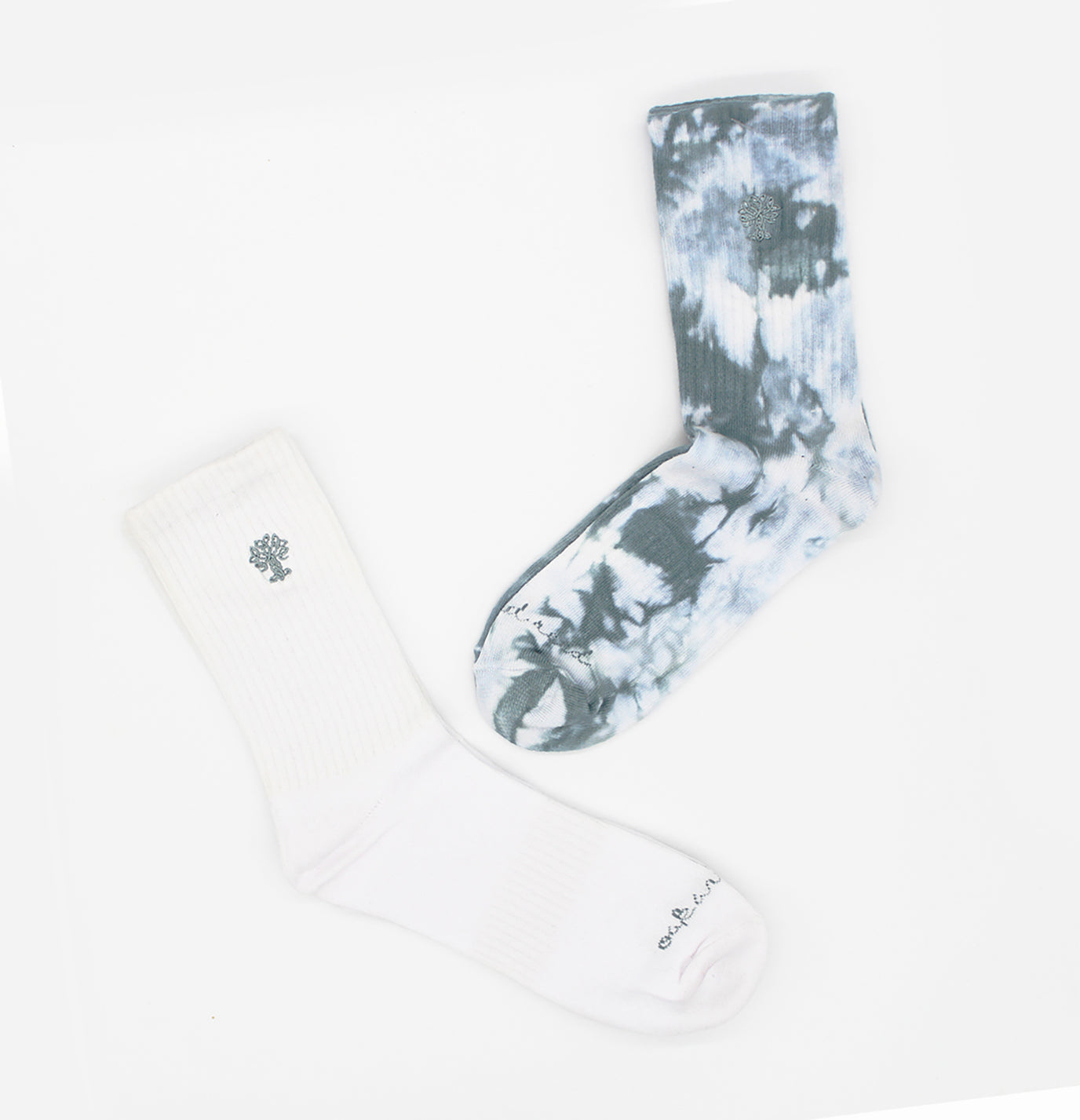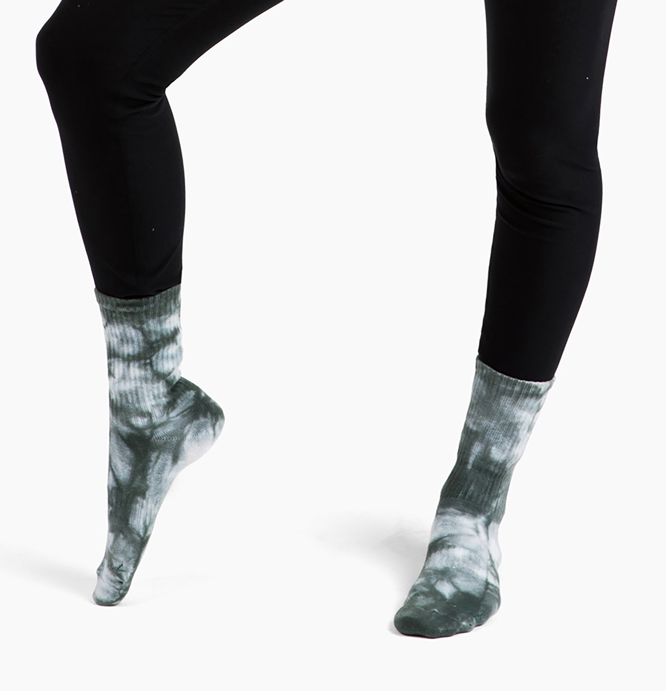Our comfy crews are an instant classic perfect for everyday style. Wear them tall or scrunched with shorts or leggings. This coordinated two-pack includes one pair solid with embroidered logo and one pair tie-dye with embroidered logo.