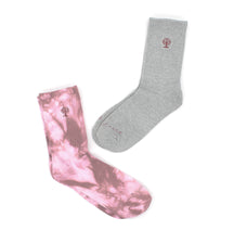 Our comfy crews are an instant classic perfect for everyday style. Wear them tall or scrunched with shorts or leggings. This coordinated two-pack includes one pair solid with embroidered logo and one pair tie-dye with embroidered logo.